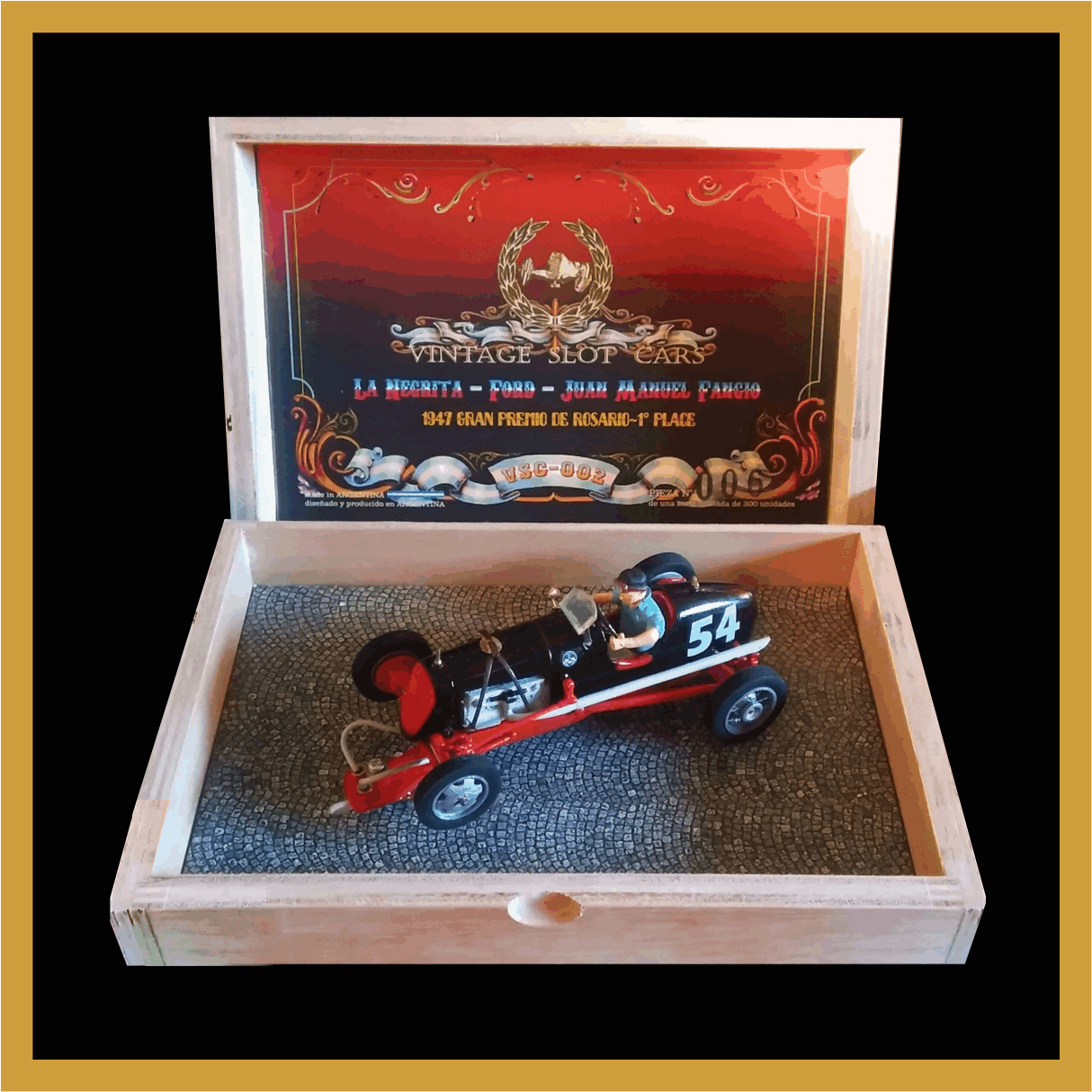 Con el chasis y el diferencial del Ford T y el motor de 4 cilindros Chevrolet 4 de 1927, este automóvil fue comprado por Juan Manuel Fangio «El Maestro», en el taller Clone de Mar del Plata. La carrocería en Argentina fue modificada por él mismo, junto a su hermano Rubén «Toto» Fangio y José Duffard, incorporando al motor Guerrero, rezago de la Segunda Guerra Mundial.