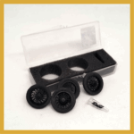 Set compuesto por 4 cubiertas ( tipo Firestone Ballon – Gum Dipped -Pirelli – Goodrich Silvertown Cord y otras ) TB1110 + 4 llantas inyectadas en PP. de alambre. Adaptable a coches de años 20 y 30 -Diám ruedas montadas: 22,7 mm tras.Eje 2 mm- adaptable a 3/32 /