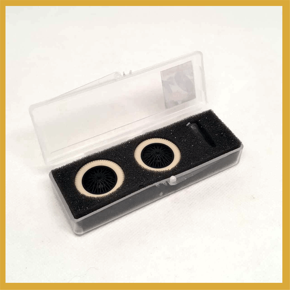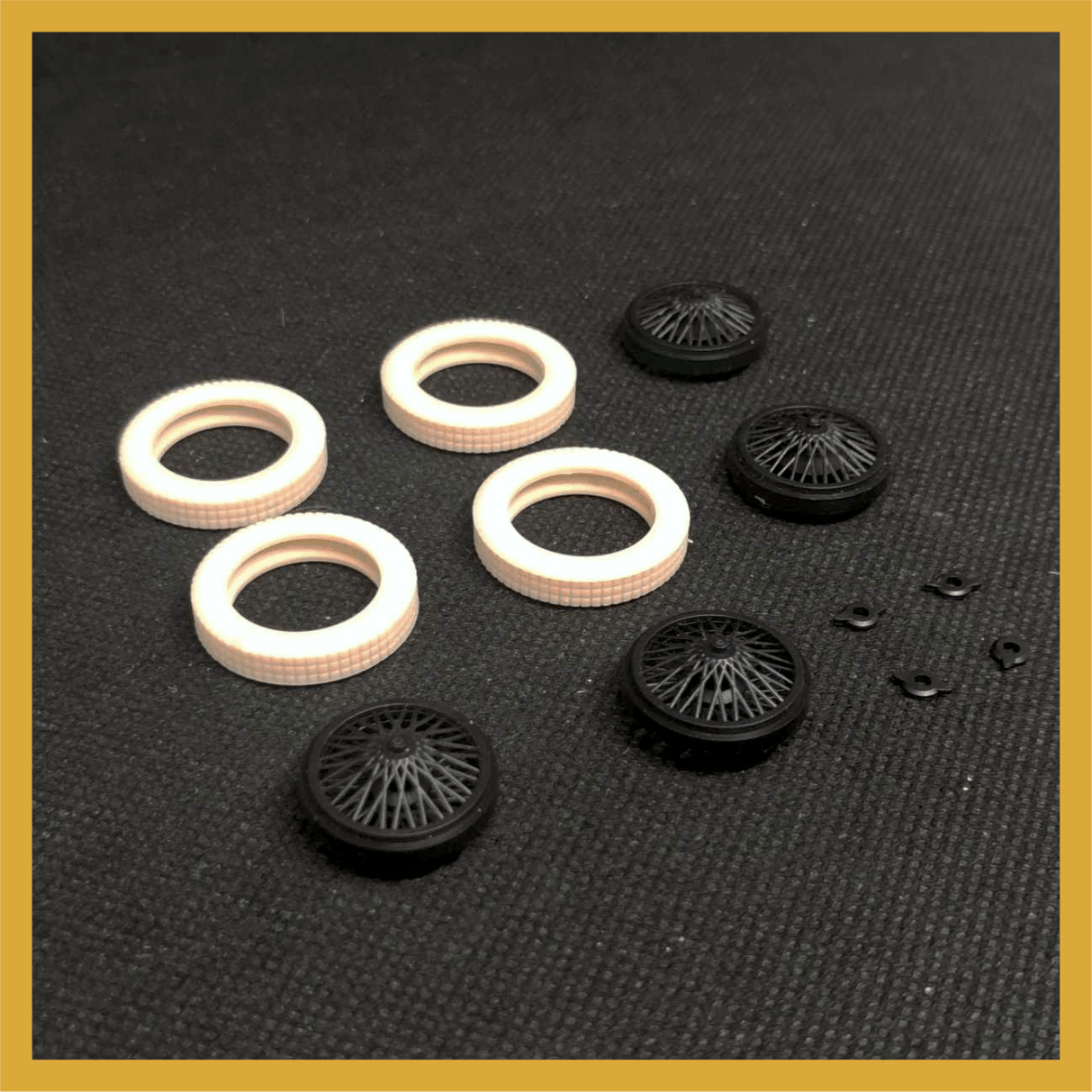 Set compuesto por 4 cubiertas DUNLOP RACING + 4 llantas inyectadas en PP. de alambre. Logo en sobre relieve en ambas caras . Adaptable a coches de años 20 y 30 -Diám ruedas montadas: 24,5 mm tras. Eje 2 mm- adaptable a 3/32 /